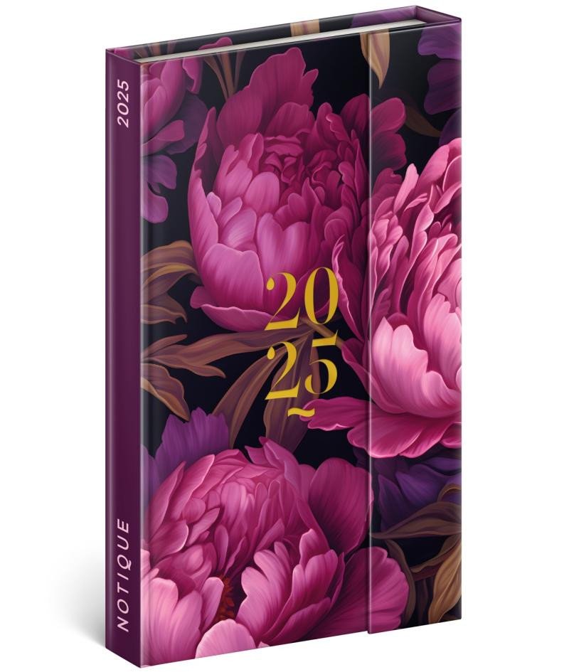 NOTIQUE Týdenní magnetický diář Fialové květy 2025, 13 x 21 cm