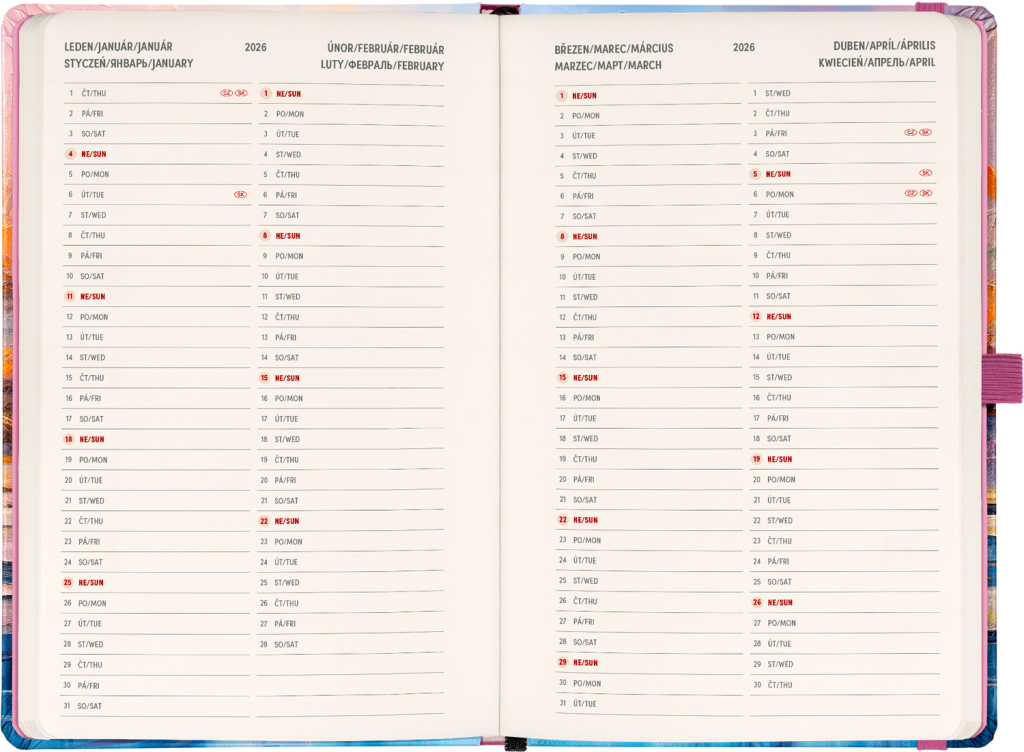 NOTIQUE Týdenní diář Leknín 2025, 13 x 21 cm