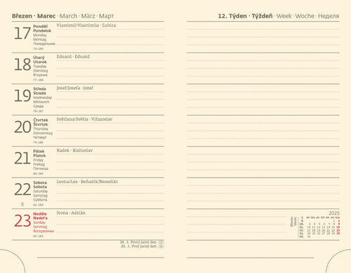 Diář 2025 Memory týdenní kapesní bílá s gumičkou