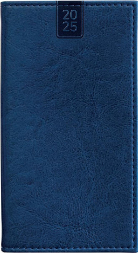 Mini týdenní praktický diář ve formátu A6 s přehledným kalendářiem a dostatečným prostorem pro poznámky. Diář je v modrém provedení s imitací kůže, která je elegantně doplněna ražbou roku a tkanou nití.