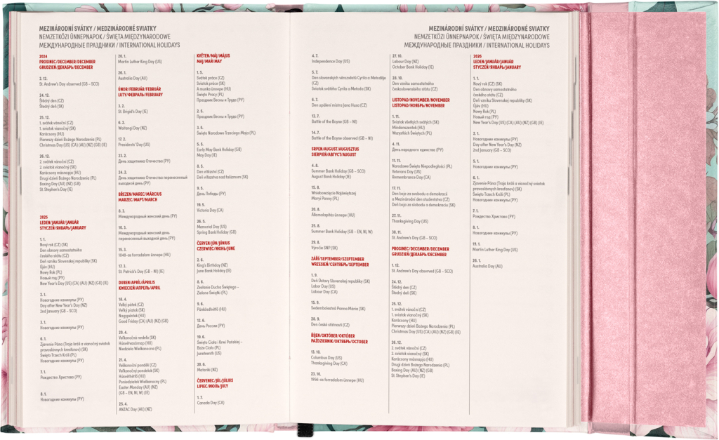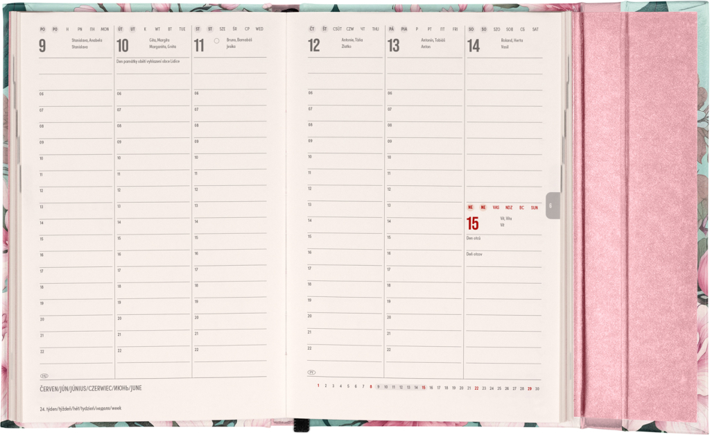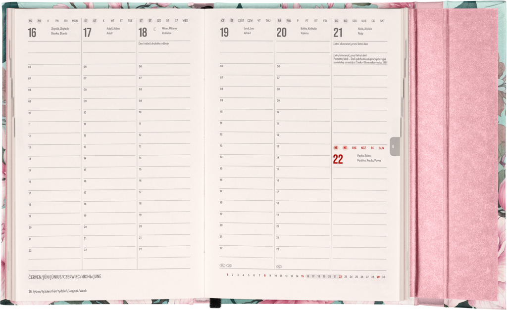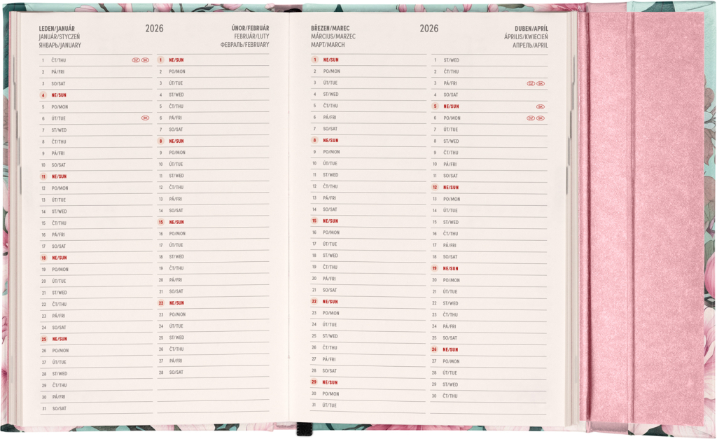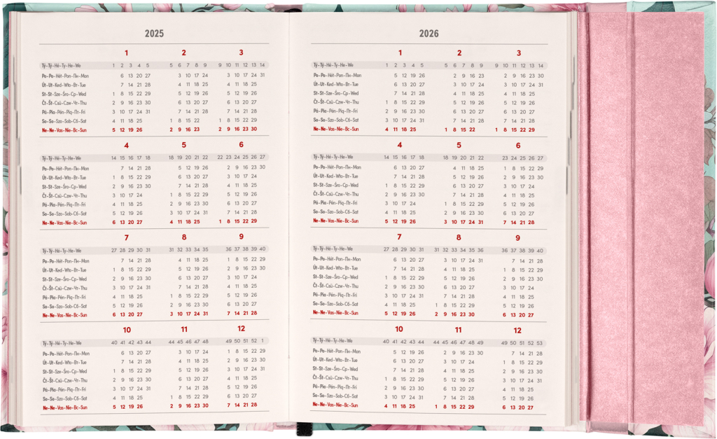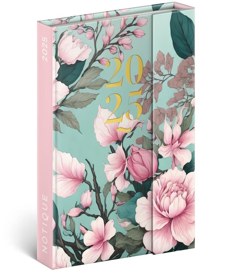 NOTIQUE Týdenní magnetický diář Růžový květ 2025, 11 x 16 cm