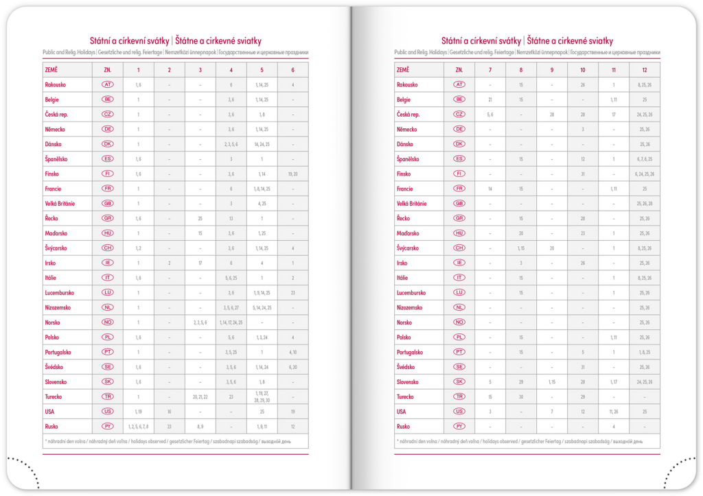 • svátky České a Slovenské republiky a mezinárodní svátky