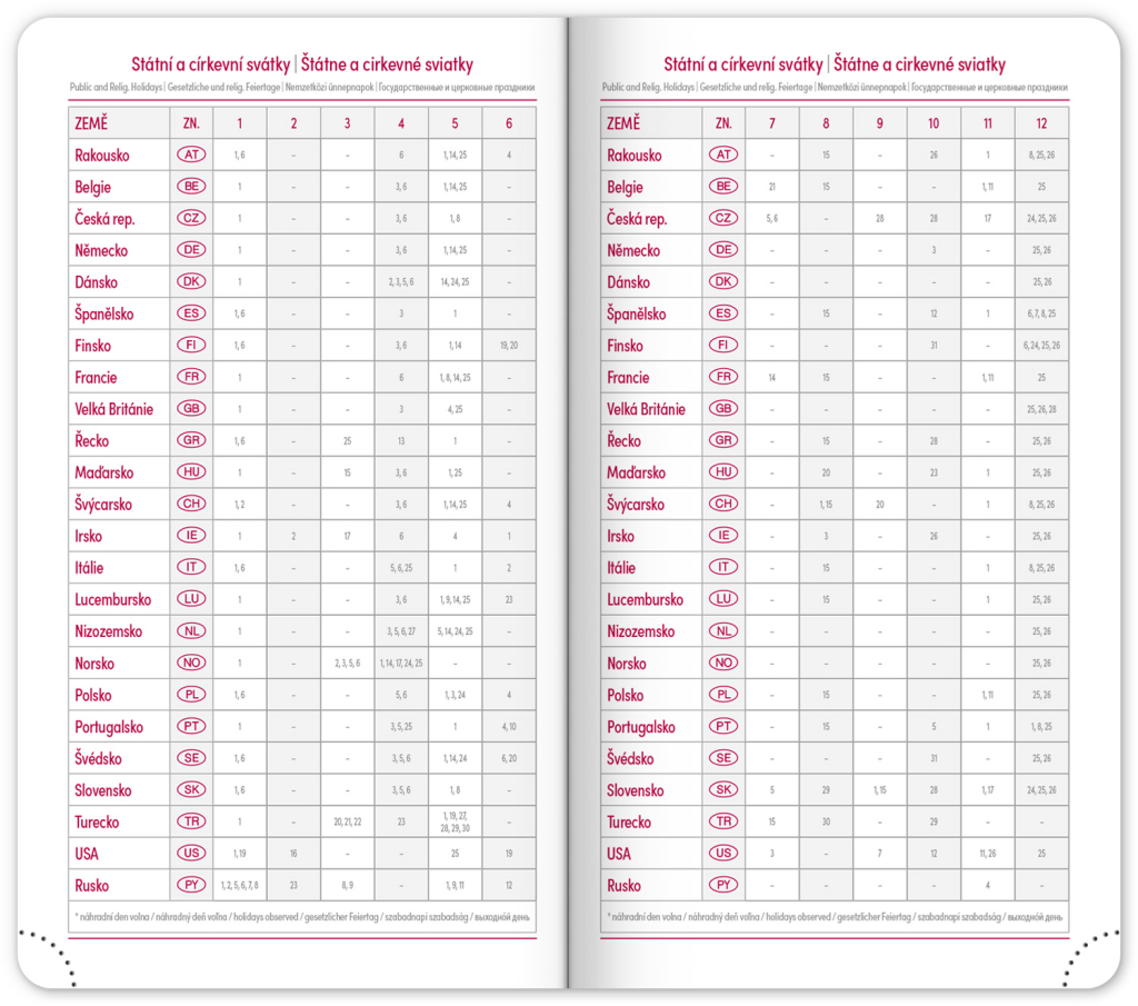 • svátky České a Slovenské republiky a mezinárodní svátky