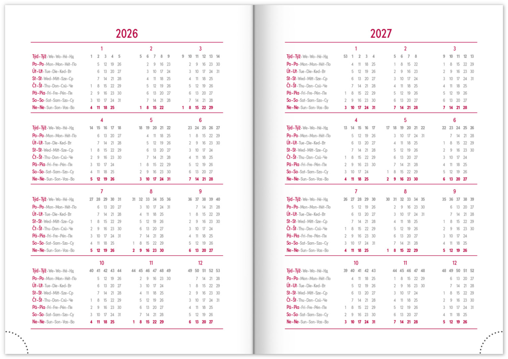 Týdenní diář Aprint Top 2026 v tyrkysové barvě. Rozšíření oblíbené řady Aprint o variantu s gumičkou na zavírání a poutkem na tužku. Týdenní rozvrh s česko-slovenským kalendáriem a doplňkovou angličtinou, němčinou, maďarštinou a ruštinou.