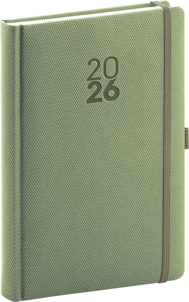 Diář 2026: Diamante - olivový, denní, 15 x 21 cm