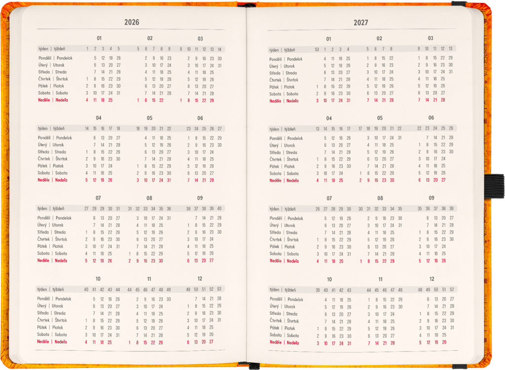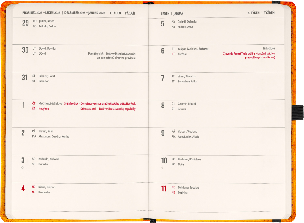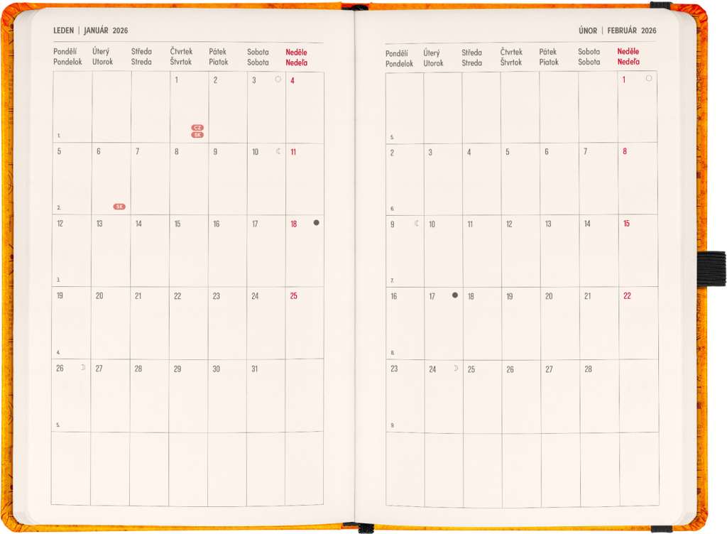 DVA SVĚTY. JEDEN PRODUKT. Hledáte dokonalou kombinaci plánování a zapisování poznámek? PLANBOOK vám přináší to nejlepší z obou světů! Perfektní spojení diáře a zápisníku – první polovina obsahuje čtrnáctidenní horizontální kalendárium s českými a slovenskými svátky, zatímco druhá polovina nabízí linkované stránky pro vaše poznámky. Praktický, stylový a dokonale přizpůsobený vašim potřebám – ať už si plánujete den, nebo přemýšlíte nad dalším velkým projektem. PLANBOOK je ideální pro všechny, kteří milují organizaci a kreativitu na jednom místě. V