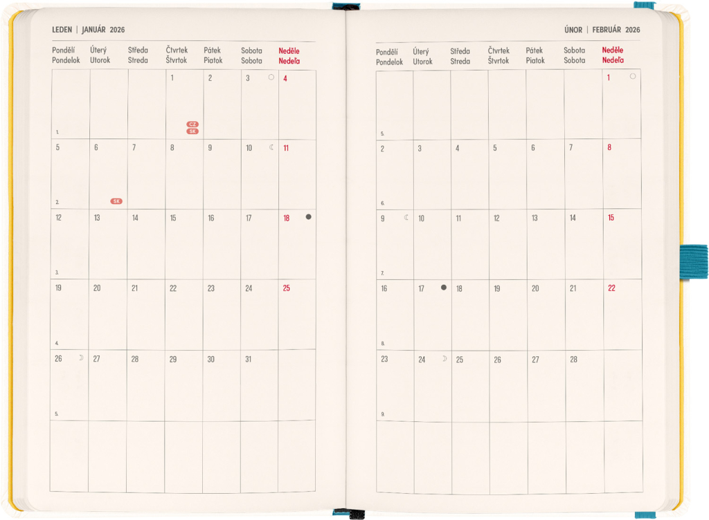 DVA SVĚTY. JEDEN PRODUKT. Hledáte dokonalou kombinaci plánování a zapisování poznámek? PLANBOOK vám přináší to nejlepší z obou světů! Perfektní spojení diáře a zápisníku – první polovina obsahuje čtrnáctidenní horizontální kalendárium s českými a slovenskými svátky, zatímco druhá polovina nabízí linkované stránky pro vaše poznámky. Praktický, stylový a dokonale přizpůsobený vašim potřebám – ať už si plánujete den, nebo přemýšlíte nad dalším velkým projektem. PLANBOOK je ideální pro všechny, kteří milují organizaci a kreativitu na jednom místě. V