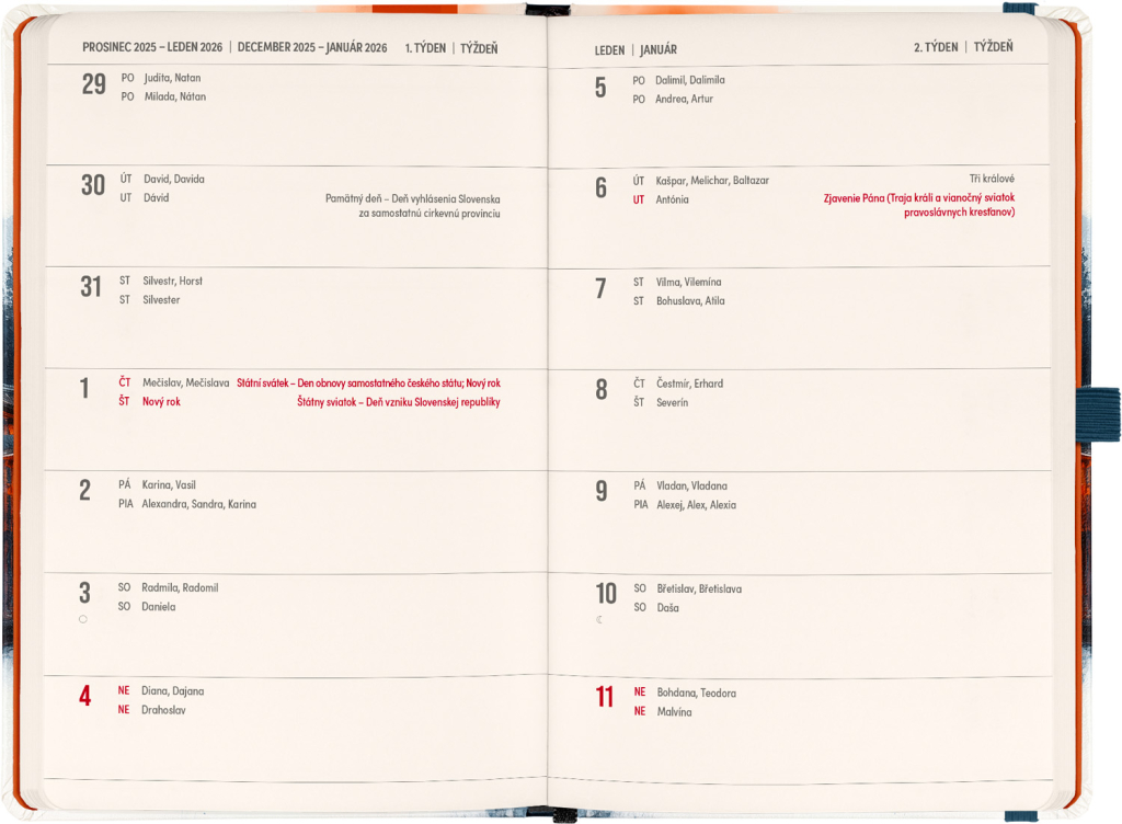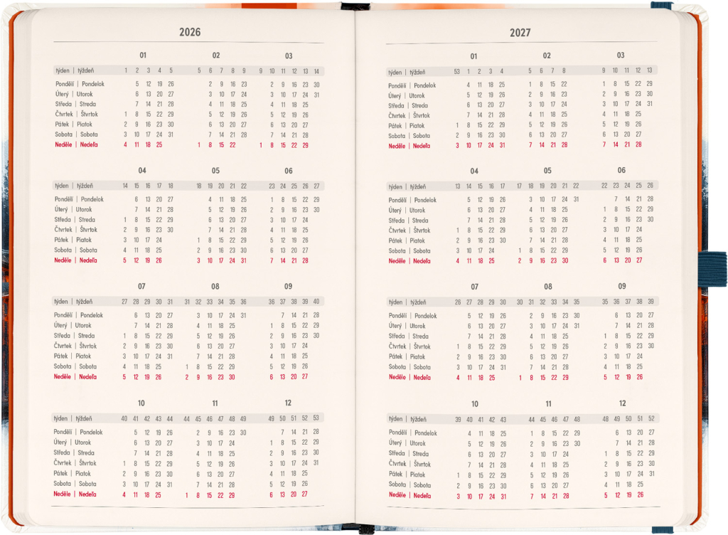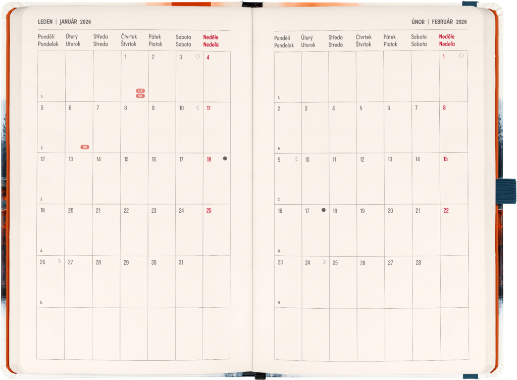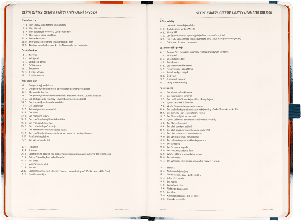 DVA SVĚTY. JEDEN PRODUKT. Hledáte dokonalou kombinaci plánování a zapisování poznámek? PLANBOOK vám přináší to nejlepší z obou světů! Perfektní spojení diáře a zápisníku – první polovina obsahuje čtrnáctidenní horizontální kalendárium s českými a slovenskými svátky, zatímco druhá polovina nabízí linkované stránky pro vaše poznámky. Praktický, stylový a dokonale přizpůsobený vašim potřebám – ať už si plánujete den, nebo přemýšlíte nad dalším velkým projektem. PLANBOOK je ideální pro všechny, kteří milují organizaci a kreativitu na jednom místě. V