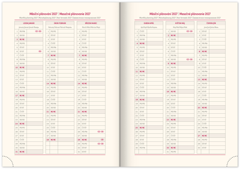 • měsíční plánovací kalendář 2027
