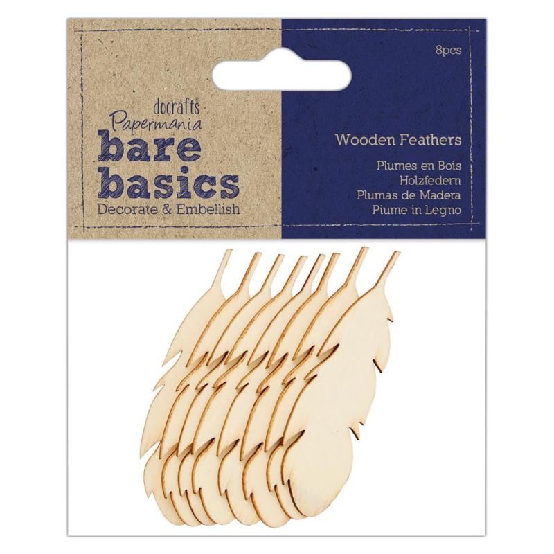 Docrafts Dřevěné dekorace - Peří 8 ks
