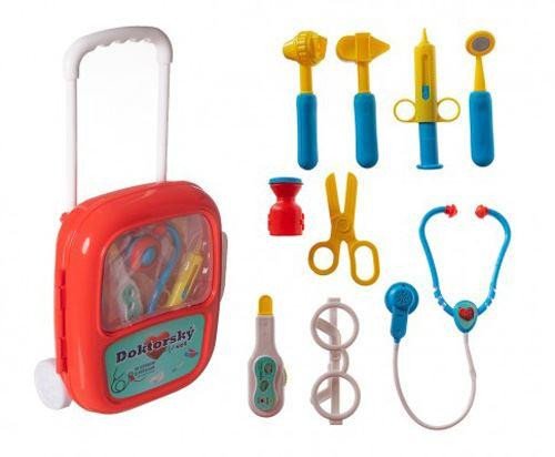 Doktorský set ze svukem a světlem (Sada se stetoskopem na baterie v plastovém kufříku na kolečkách)