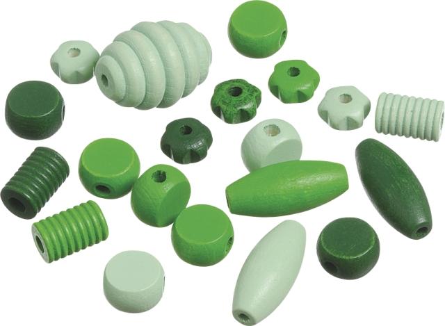 Dřevěné korálky mix různé tvary - zelená 20 ks