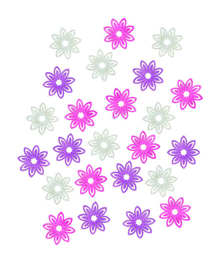 Dřevěné kytky v odstínech růžové, fialové a bílé jsou určeny k vytváření dekorací.