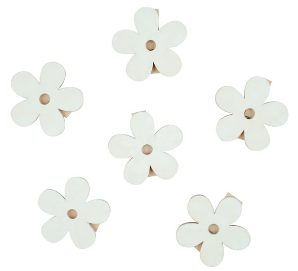 Dřevěné kytky 4cm s kolíčkem - bílé 6ks