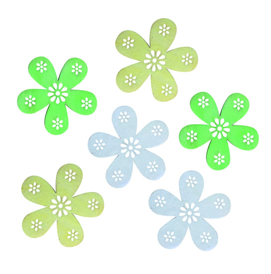 Dřevěné výseky 6cm - květy zelený mix 6ks
