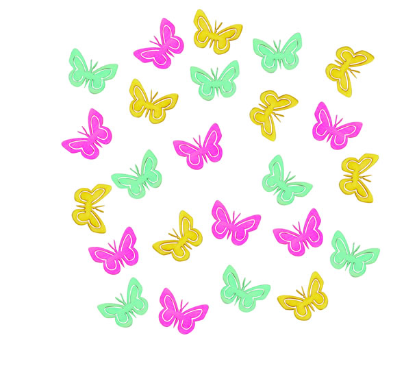 Dřevění motýli v pestrých barvách jsou určeni k vytváření dekorací.