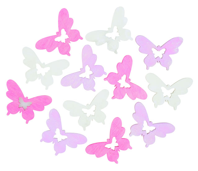 Dřevění motýli 4cm - růžovofialový mix 12ks