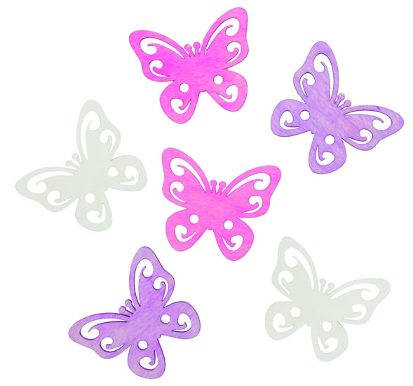 Dřevění motýli 6cm - růžovofialový mix 6ks