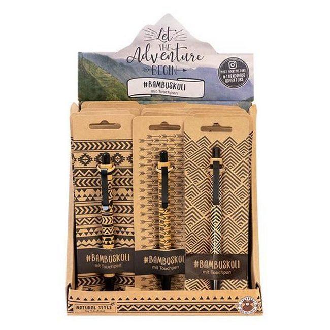 Skvělé bambusové kuličkové pero s matnou černou kovovou sponou a integrovaným dotykovým perem. Barva psaní: černá K dispozici ve 3 různých provedeních. Délka: 14.1 cm Průměr: 1.5 cm