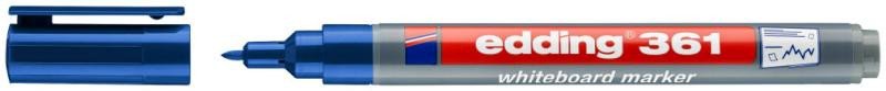 Popisovač na bílé tabule edding 361 s tenkým hrotem umožní psaní tenkou stopou na všechny neporézní povrchy jako je email či melamin. Popisovač lze použít i na flipcharty. Napsaná stopa rychle zasychá, je světlostálá a je stíratelná zasucha. Inkoust neobsahuje butylacetát. Klip na víčku brání skutálení popisovače. Popisovač je znovu naplnitelný (náhradní inkoust edding BTK 25 a BT 30) a jeho kulaté hroty jsou vyměnitelné. Prodloužením životnosti popisovače pomůžete snížit množství komunálního odpadu. Kulatý hrot. Šíře stopy: 1 mm. Vyrobeno v Německu.