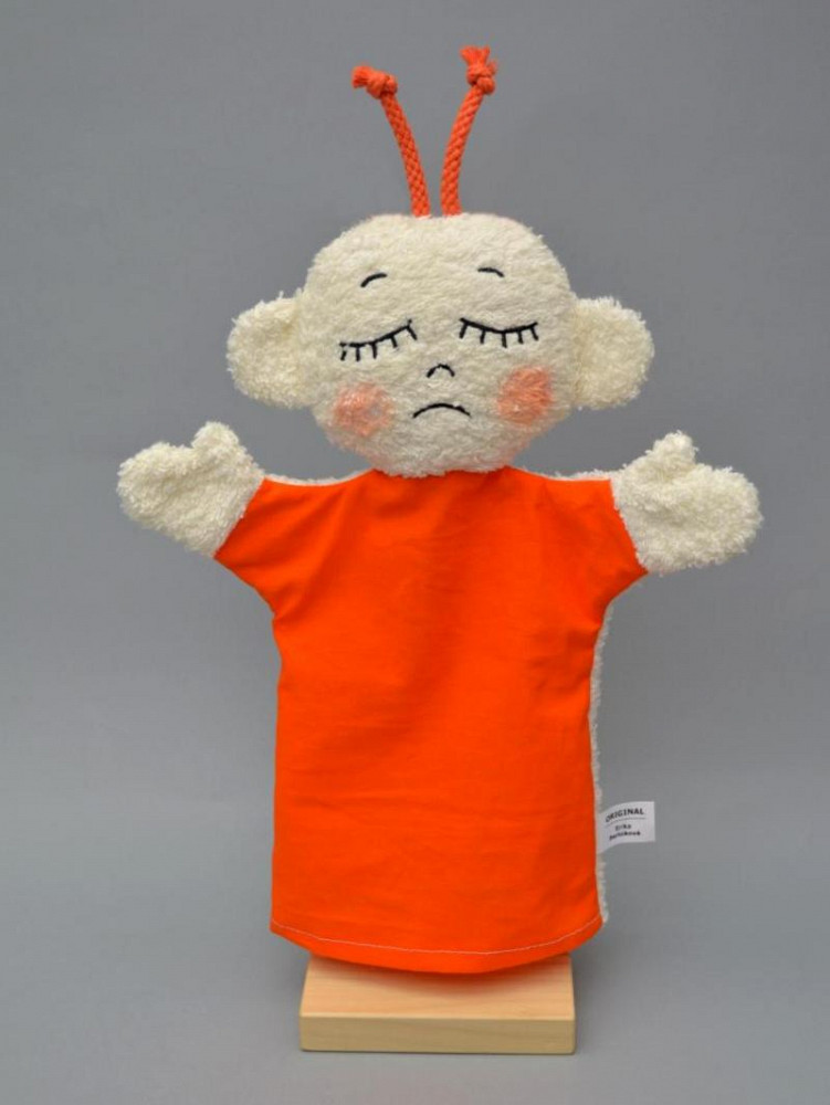 Textilní maňásek představující emoci stud, vhodný pro psychologické poradny, speciální pedagogy, učitele ve školkách a dětských skupinách a také pro domácí hraní. Vyrobeno z přírodních materiálů. Obličej je vyšitý, hlavičky měkce cpané a celý maňásek je velmi příjemný na omak. Pratelný. Velikost cca 30cm. Certifikované jako hračka (EN71). Vyrobeno ručně v ČR.