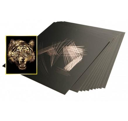 Zlatá velmi kvalitní škrabací folie. V balení 10 ks. Vyrobeno v Anglii.