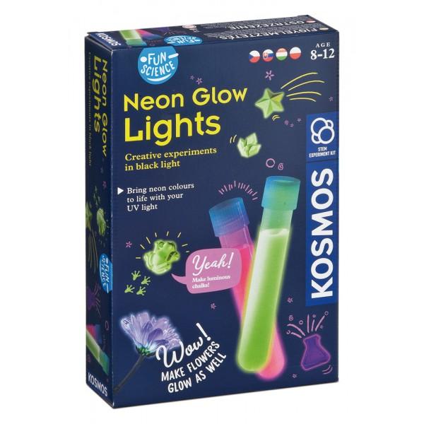 Od svítících kříd, přes hrůzostrašné figurky ze sádry až po pokusy s UV-zářením s materiály z domácnosti, vše se točí kolem neonů. Chytré: z krabice samotné se stává neonová vitrín