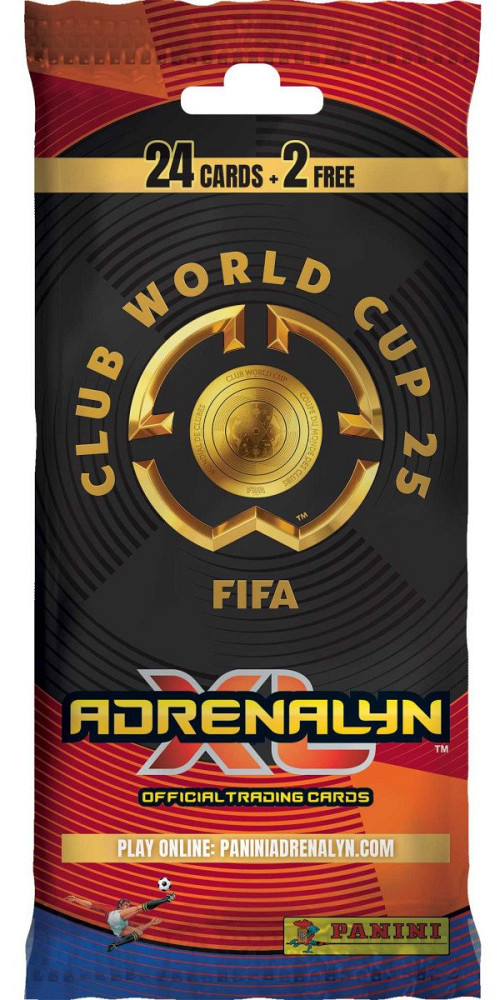 Sběratelské karty FIFA CLUB WORLD CUP 2025 ADRENALYN - FATPACK. Balíček obsahuje 24 karet + 2 zdarma.