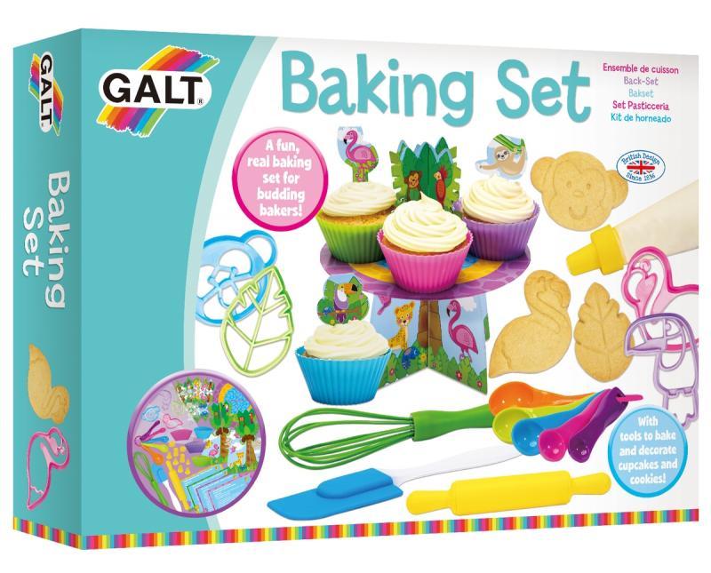 Zábavná sada pro opravdové pečení obsahující náčiní v zářivých barvách. Můžeš péct dortíky a sušenky, zdobit je pomocí zdobicí sady na polevu a vystavit je na podnosu. Sada obsahuje čtyři karty s jednoduchými recepty na vanilkové a čokoládové dortíky, sušenky a vanilkovou polevu. Obsah: váleček, špachtle, metla, 5 odměrek, 4 vykrajovátka na sušenky, 4 opakovaně použitelné silikonové košíčky na dortíky, 2 opakovaně použitelné sáčky na polevu a 5 zdobicích trysek, podnos, 8 dortových ozdob, 4 karty s recepty a návod