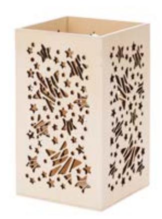 Dřevěná lucerna, která Vám vykouzlí krásnou atmosféru. Můžete použít přírodní a nechat tak vyniknout krásy dřeva nebo jej pomalovat akrylovými barvami či ozdobit ubrousky, rýžovými papíry za pomoci výtvarné techniky decoupage. Na čajovou svíčku a nebo světelný řetěz. Rozměry 17 x 10 x 10 cm.