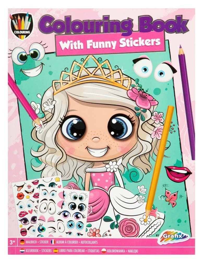 Omalovánky s vtipnými samolepkami obsahují 24 obrázků k vymalování a 2 listy samolepek očí a úst k dotvoření obličejů milých postaviček.