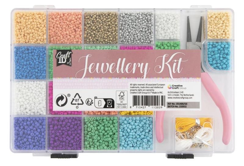 Balení obsahuje: * 20 barev korálků o dvou velikostech v praktickém plastovém boxu. * tvarovací kleště na bižuterii, * zámečky, zavírání, kroužky a háčky na náušnice, * šňůrky