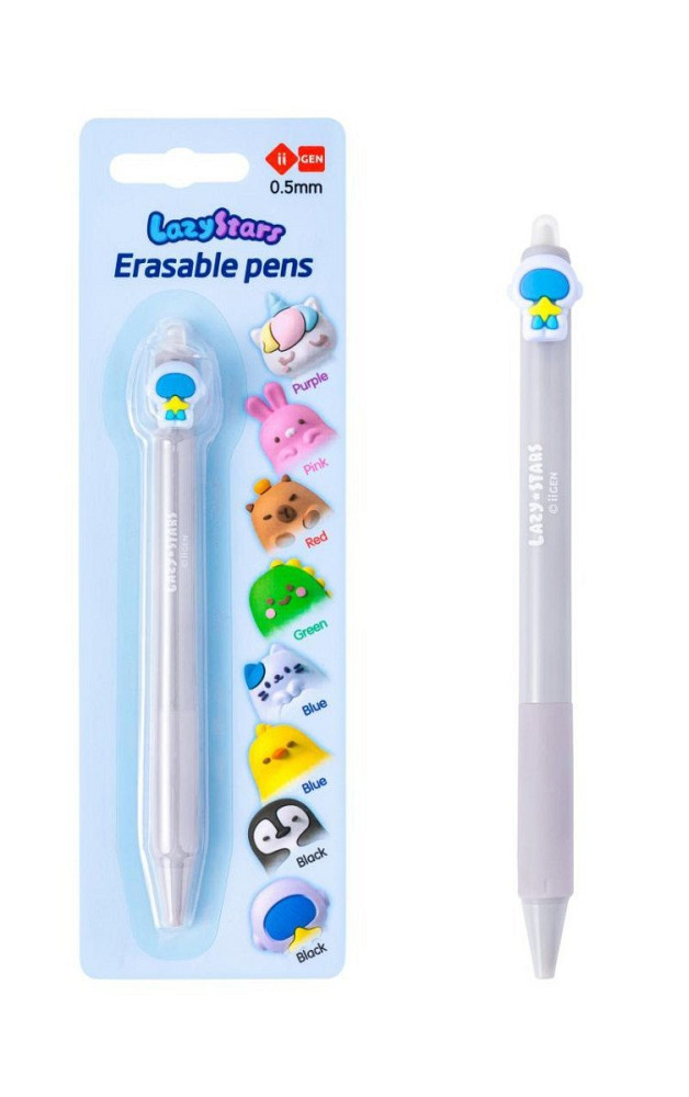 Klikací gumovací gelové pero s motivem Astronauta. Tloušťka hrotu 0,5 mm, inkoust černý, na blistr kartě.