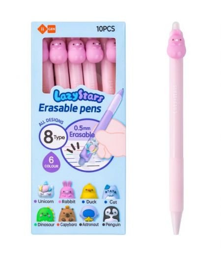 Klikací gumovací gelový roller Králík s hrotem 0,5 mm, barva inskoustu - růžová. Ideální do školního penálu i jako dárek – pero píše hladce a chyby lze snadno vymazat pomocí praktické gumovací koncovky.