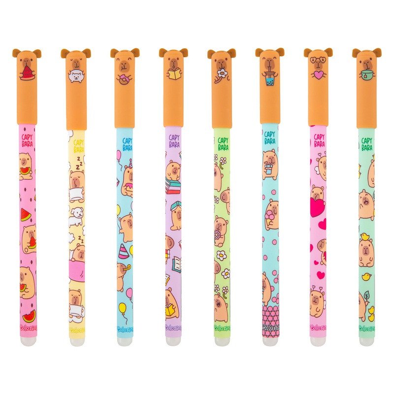 Kolekce gumovatelných per s veselým víčkem ve tvaru roztomilé kapybary.