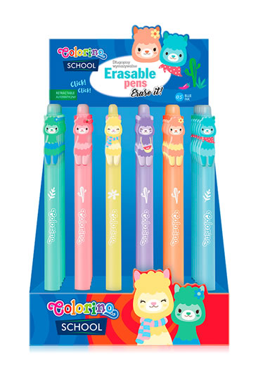 Oblíbená praktická pera pro školáky - psaní textu bez přepisování. Stačí vygumovat napsaný text a snadno napsat nový. Motivy roztomilých lam v barevném mixu. Barva náplně: modrá. Náhradní náplň dostupná pod obj. kódem R37534PTR. Šířka stopy: 0,5 mm. Balení: 36 ks/displej.