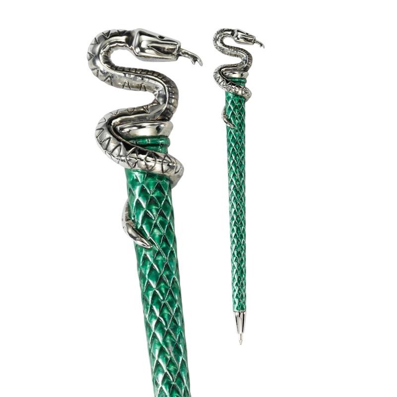 Sběratelské pero s motivem bradavické koleje - Zmijozel. Povrch je pokrytý stříbrem. Rozměr: cca 15 cm