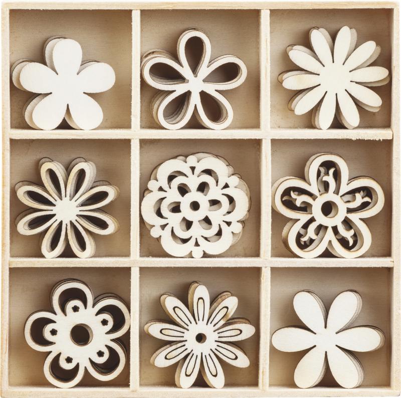 HEYDA Sada dřevěných dekorací v krabičce - květiny