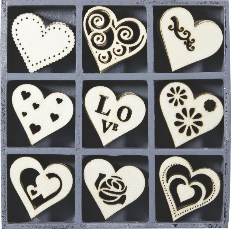HEYDA Sada dřevěných dekorací v krabičce - srdce