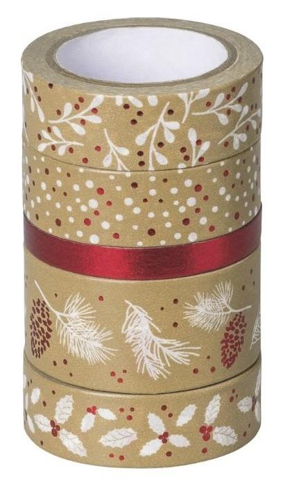 Balení obsahuje 5 typů ozdobných samolepicích papírových pásek. Rozměr pásek v balení: 3 role: 12mm x 5 m , 1 role: 1,2 cm x 5 m, 1 role: 6 mm x 5m. Velmi snadno se sundají, lze opětovně použít. Vhodné na ozdobení dárků, přáníček, scrapbookových projektů i dekorací v domácnosti.