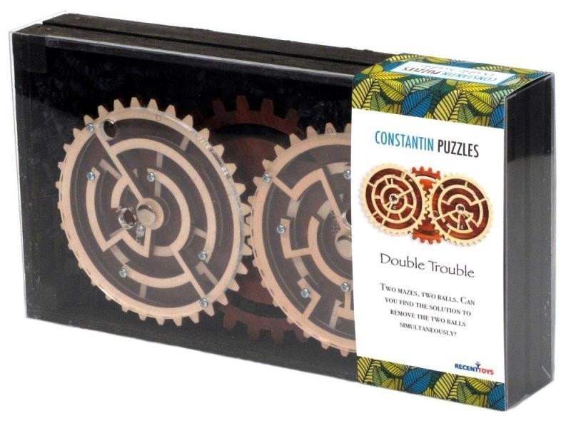Dvě bludiště, dvě kuličky, dva problémy. Dokážete najít řešení pro získání obou kuliček? Oba dřevěné kruhy se pohybují navzájem. Krok vpřed na jedné straně může znamenat krok zpět na straně druhé! Dokážete vyřešit hádanku a každého ohromit? Originální dřevěný hlavolam.