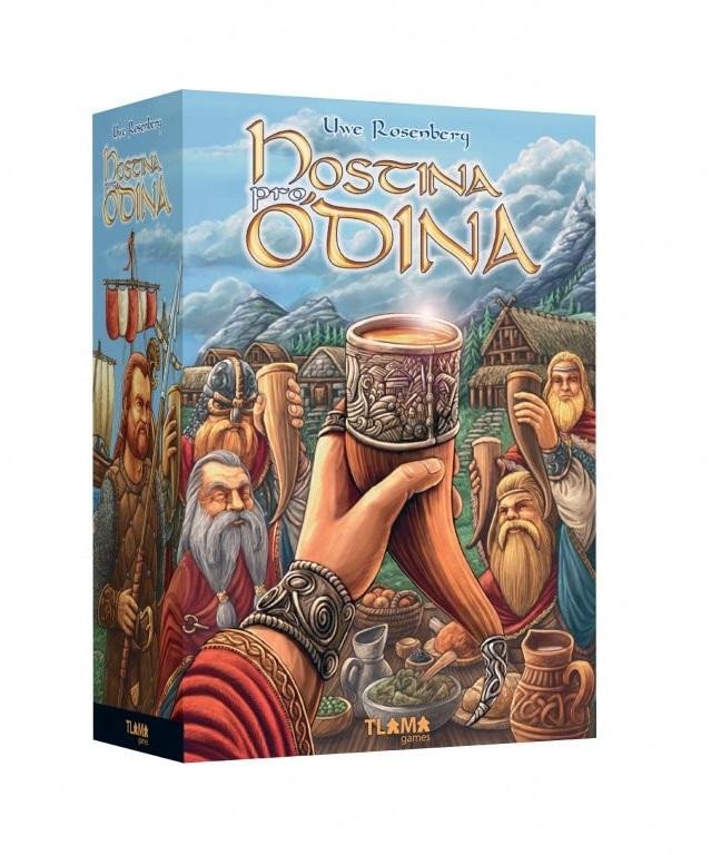V této hře od legendárního designera Uwe Rosenberga budete podnikat nájezdy a objevovat nová území. Vyzkoušíte si také jejich každodenní činnosti: výrobu zboží, lov, shromažďování zásob a jejich zpracování, stavění budov a lodí, objevování nových území a provádění nájezdů. To vše, abyste dosáhli co nejlepšího postavení ve společnosti. Nakonec zvítězí hráč, jehož majetek má největší hodnotu. Hostina pro Ódina je strategická hra s nepřeberným množstvím cest k vítězství, s řadou rizik vyvážených odměnou. Významnou část tvoří vaše deska hráče, která má neuvěřitelných 86 políček, které se snažíte zakrýt různými dílky. Stejně tak dlouhý dům a ostrovní kolonie mohou nabídnout významné odměny, ale vše má svou cenu. Každý rok rozmísťujete dělníky na akční pole a následně se snažíte splnit požadavků své hostiny. Vikingy umísťujete na hlavní plán akcí s neuvěřitelnými 61 různými možnostmi na výběr. Akční pole jsou ve čtyř sloupcích a každý další sloupec si vyžádá více Vikingů. Přinese však o to silnější akci. Na konci každého kola budete muset naplnit hodovní stůl jídlem. Budete mít také možnost položit cenné zelené a modré zboží na svou hráčskou desku. Snažíte se obklopit předtištěné ikony a získat tak odměnu při produkci. Navíc dokončené řádky a sloupce vám přinášejí větší příjem mincí. Rozšířené vydání navíc nově obsahuje i obě malá rozšíření: Ostrovy a Sklizeň. Minirozšíření Ostrovy přináší další ostrovy a více variability a možností do každé partie. Nové ostrovy navíc nabízí nový herní bonus. Minirozšíření Sklizeň přináší proměnlivé možnosti sklizně pro každou partii hry, žetony surovin pro sklizeň, nové druhy zboží a také zrychlenou variantu hry na šest kol. Hra obsahuje také rozsáhlý almanach popisující historický kontext některých herních prvků, které ve hře najdete. Najdete zde rejstřík osobnoství, předmětů a zvyklostí vikingů. Pravidla a herní materiál je v češtině. Doba hraní: 90-120 min. Počet hráčů: 1-4.