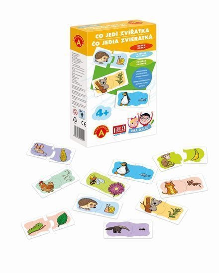 Děti přiřazují k jednotlivým zvířátkům jejich potravu, tvar spojení jim napoví, jestli opravdu našli správnou dvojici. Naučné hraní pro malé objevitele. Krabička "HRA ŠKOLOU® – CO JEDÍ ZVÍŘÁTKA ", je plná zvířátek a jejich pochoutek. Co jí ježek? Co mlsá koala? Spoj 20 zvířátek s jejich oblíbenou dobrotou a trénuj postřeh, paměť i zrak. Kreslená stolní hra pro děti od 4 let. Rozměry balení 16 x 25 x 5 cm
