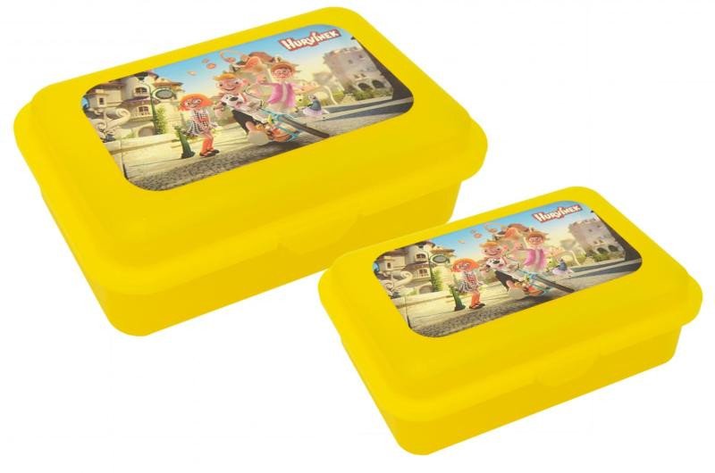 Sada dvou plastových boxů s automatickým uzávěrem. Na svačinu do školy či na výlet. S obrázkem filmového Hurvínka. Obsah 1,0L+0,5L.