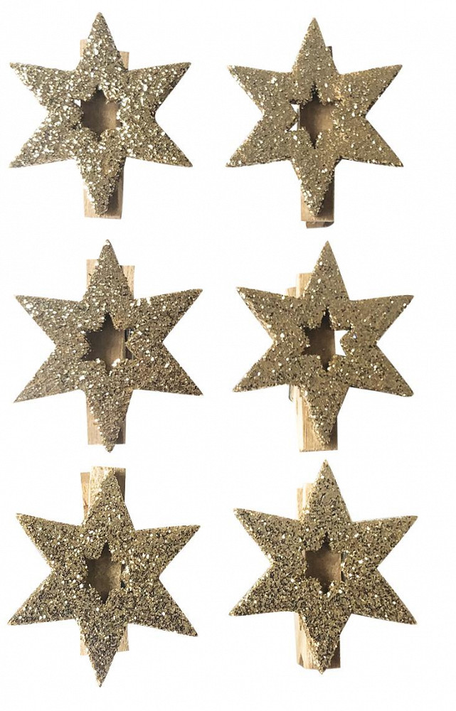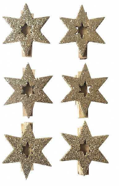 Hvězda zlatá na kolíčku 4 cm, 6 ks