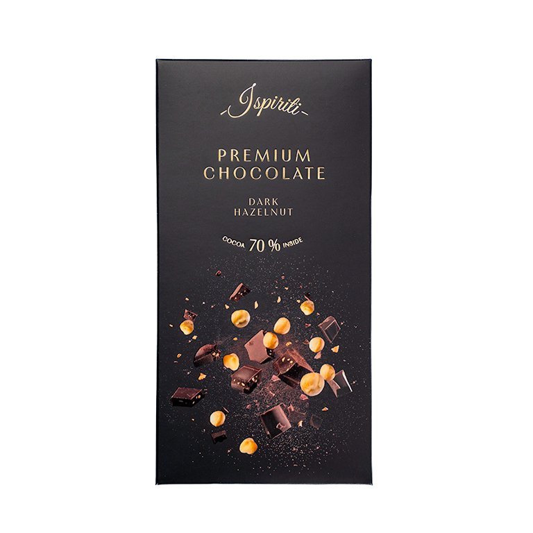 ISPIRITI Hořká čokoláda 70% s kousky lískových oříšků 80g