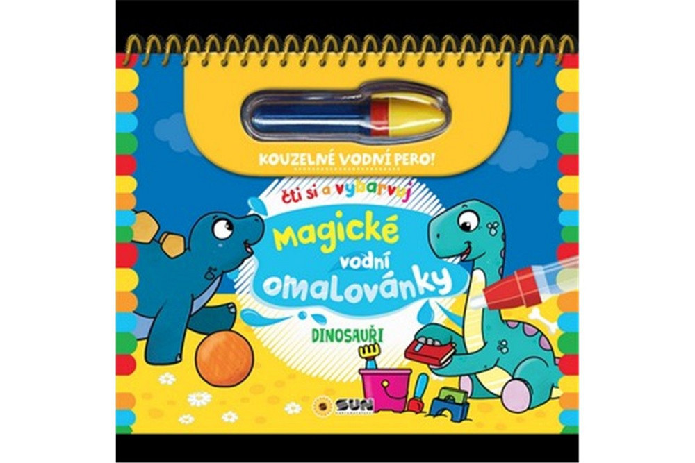 Na tyhle kouzelné omalovánky s pohádkou o dinosaurech ve škole nepotřebuješ barvy ani pastelky. Naplníš kouzelné vodní pero vodou, nebo si můžeš vzít sklenici vody a mokrým štětcem přejeď přes obrázky. Barvy se objeví!