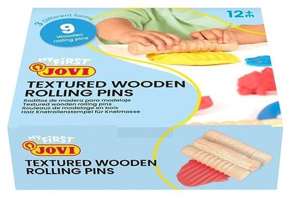 Dřevěné válečky JOVI se 3 různými reliéfy jsou dokonalým doplňkem pro objevování všech možností naší plastelíny Baby. Jejich dřevěný povrch přispívá k posílení smyslové stimulace a snadnému používání pro nejmenší. Kromě toho, že jsou bezpečné a odolné, jsou udržitelné, protože jsou vyrobeny z obnovitelných a ekologických materiálů. Použití dřevěných doplňků nabízí v raných fázích vzdělávání několik výhod: ideální velikost pro malé ruce, která poskytuje samostatnost při jejich používání, umožňují experimentování s texturami, čímž rozvíjejí jejich smyslovou a tvůrčí stimulaci, prodloužené používání, protože je lze snadno umýt a znovu použít. Válečky obsahují 3 různé vzory.