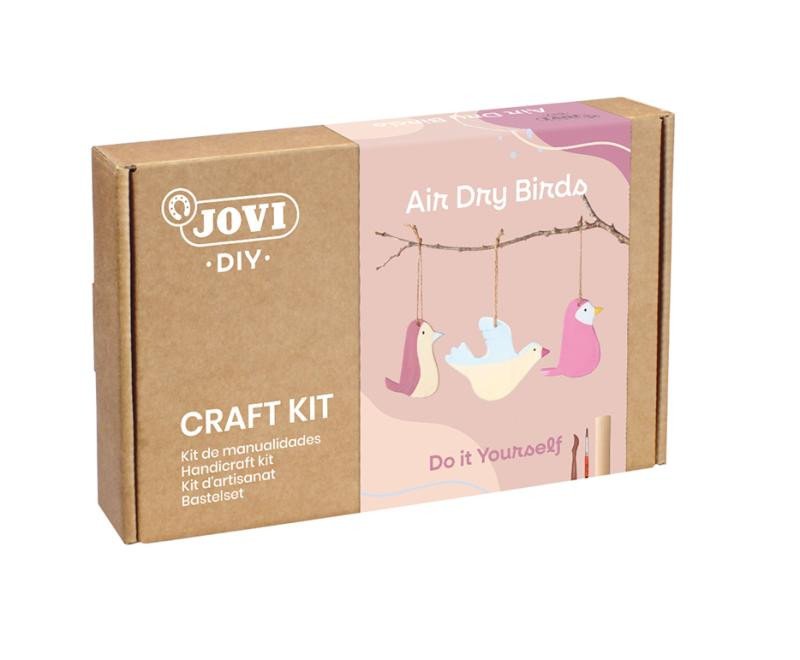 Kreativní sada na výrobu ptáčků ze samotvrdnoucí hmoty. Obsahuje návod krok za krokem + QR tutorial video. Balení obsahuje: JOVI samotvrdnoucí hmota 500 g, 1 ks dřevěný váleček, 5 ks modelovacích špachtlí, 1 ks brusný papír, 8 ks 15 ml kvašových temperových barev, 2 ks štětců, 1 ks zápisník /16 stran/, 4 ks lněné provázky /50cm/ a tištěný barevný návod krok za krokem.