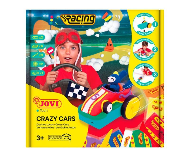 Sada obshauje: 6 x 50 g plastelíny + 2 x 15 g plastelíny + 3 ks modelovacích nožů + 1 samonabíjecí podvozek /USB-C/ + 2 kola. Pojďme se bavit hraním a modelováním těch nejšílenějších autíček s JOVI plastelínou. Hodiny zábavy při vytváření a modelování vlastního auta. Na podvozek jednoduše vymodelujete své závodní auto, nasadíte kola a jste připraveni na závod. Podvozek je nabíjetelný pomocí USB-C nabíječky /není součástí balení/ Staňte se nejlepším designérem závodních aut na světě s Crazy Cars.